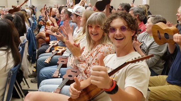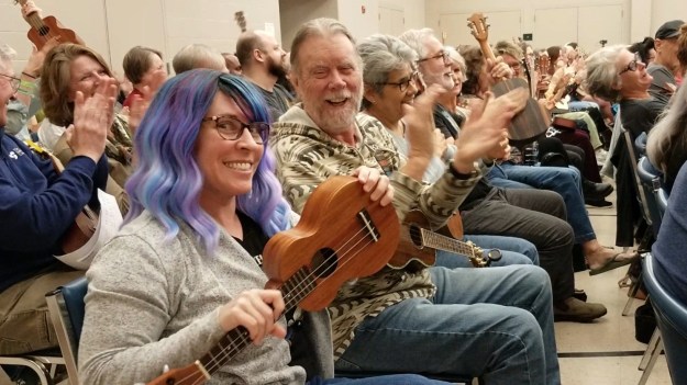 For anyone who might be attending for the first time, the entrance to St. John’s is on the Wynona Ave. side of the church. From there simply follow the sounds of ukuleles tuning up. 🙂
