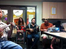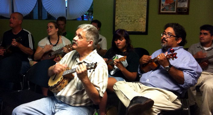 The Austin Ukulele Society reached a milestone this week: David Salazar, who we met at this week’s meeting, was the 100th person to “like” us on FaceBook. Thanks David, and welcome!