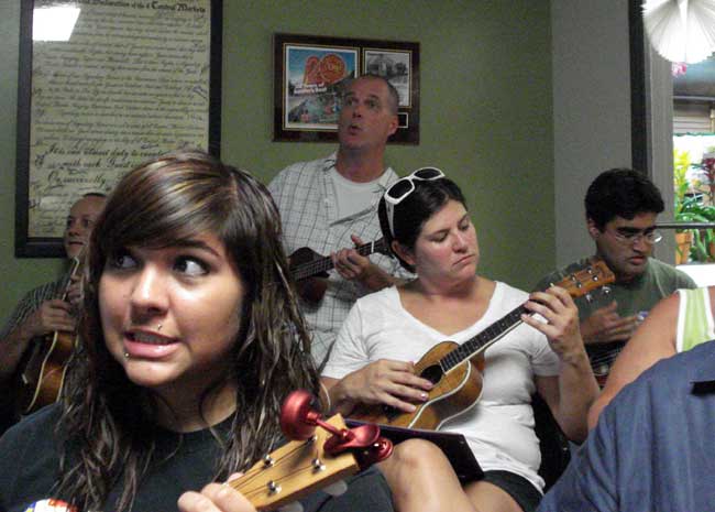 Thanks to everyone who came to our August meeting Tuesday night. By Jen’s quick headcount, 35 players were strumming away – our biggest turnout since we started meeting back in January! A very warm welcome to the many first-timers who joined us — we hope to see you again soon!