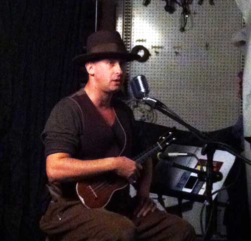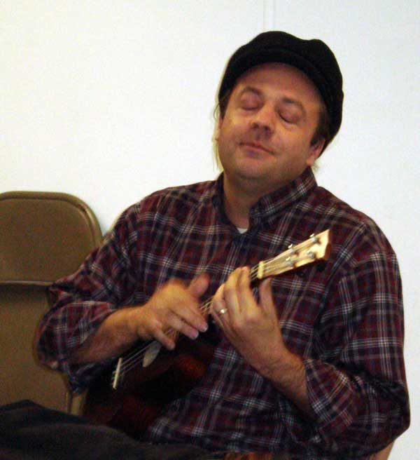 After a stretch, Rev played us some songs–some instrumental, some vocal, some blues, some Tin Pan Alley–and showed us how much he has practiced (a lot). He played almost every song on a different ukulele, from a soprano to a baritone resonator. If you weren’t there, and if you ever get a chance to see Lil Rev play a concert, don’t miss it.