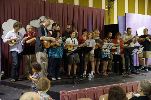 Yesterday we sounded fantastic! [Walter’s] kazoo and Kendra and Ian’s vocal solos were real crowd-pleasers. The unexpected addition of Gary’s upright bass added a whole new dimension to our sound. After we played, there were so many people who approached me to thank us for coming and express how much they loved our music and the opportunity to sing along. Many thanks to everyone who attended — it was a fun experience!