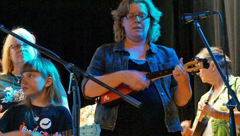 those in the audience who had ever thought about learning the uke to come to our next meeting and try it out.