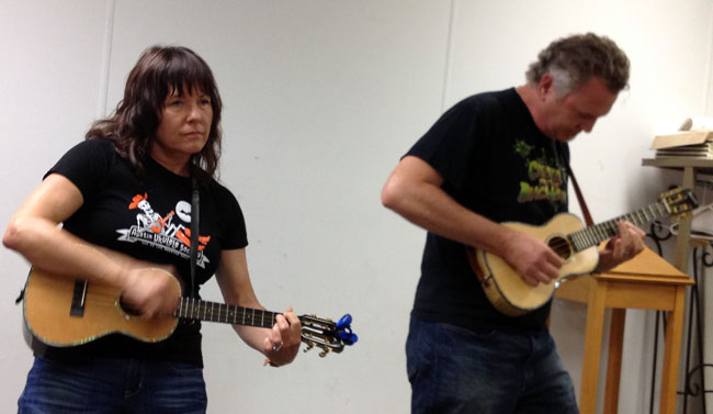 happening around Austin that involved AUS members. After the meeting was the “Voyage to Uketania” show at the Sahara Lounge, and then on Thursday, June 20, Deb Porter comes to town to do her “Shine when you sing with your ukulele” workshop and concert at our home base, the Memorial United Methodist Church. It’s at 7 p.m.–you won’t regret it if you come and join us! It’s for those who want to sing as they play more effectively.