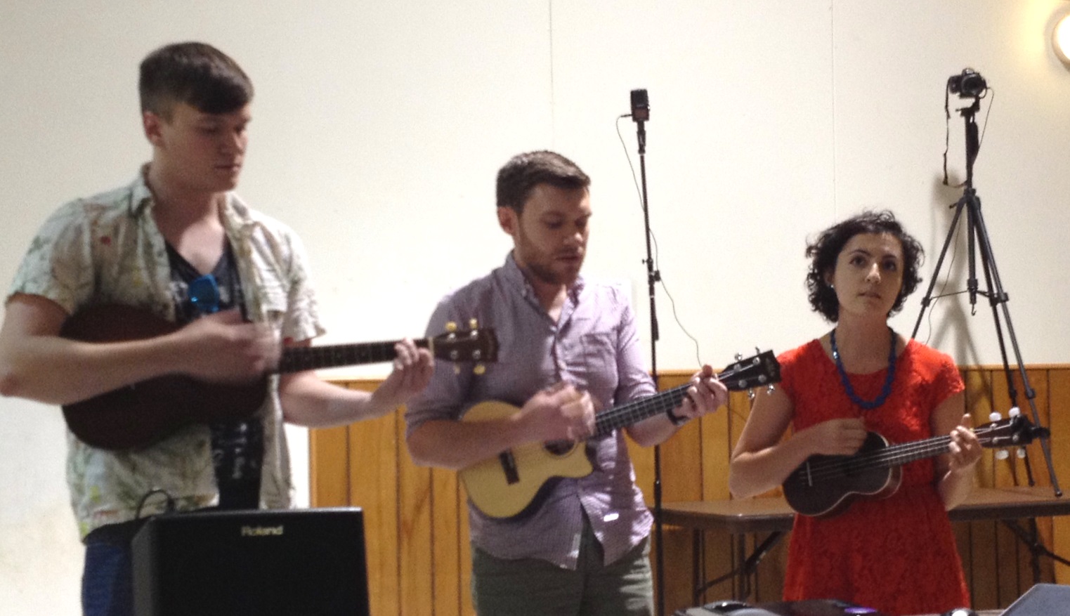August’s meeting, our biggest to date, had nearly 100 ukulele players singing and strumming a great tune by The Clash: “Should I Stay or Should I Go?” The fast tempo and contagious rhythm energized our talented group who proved yet again what a wonderfully diverse instrument our beloved ukulele is, moving seamlessly from reggae to 80’s punk rock, to Tin Pan Alley tunes and Willie Nelson country.