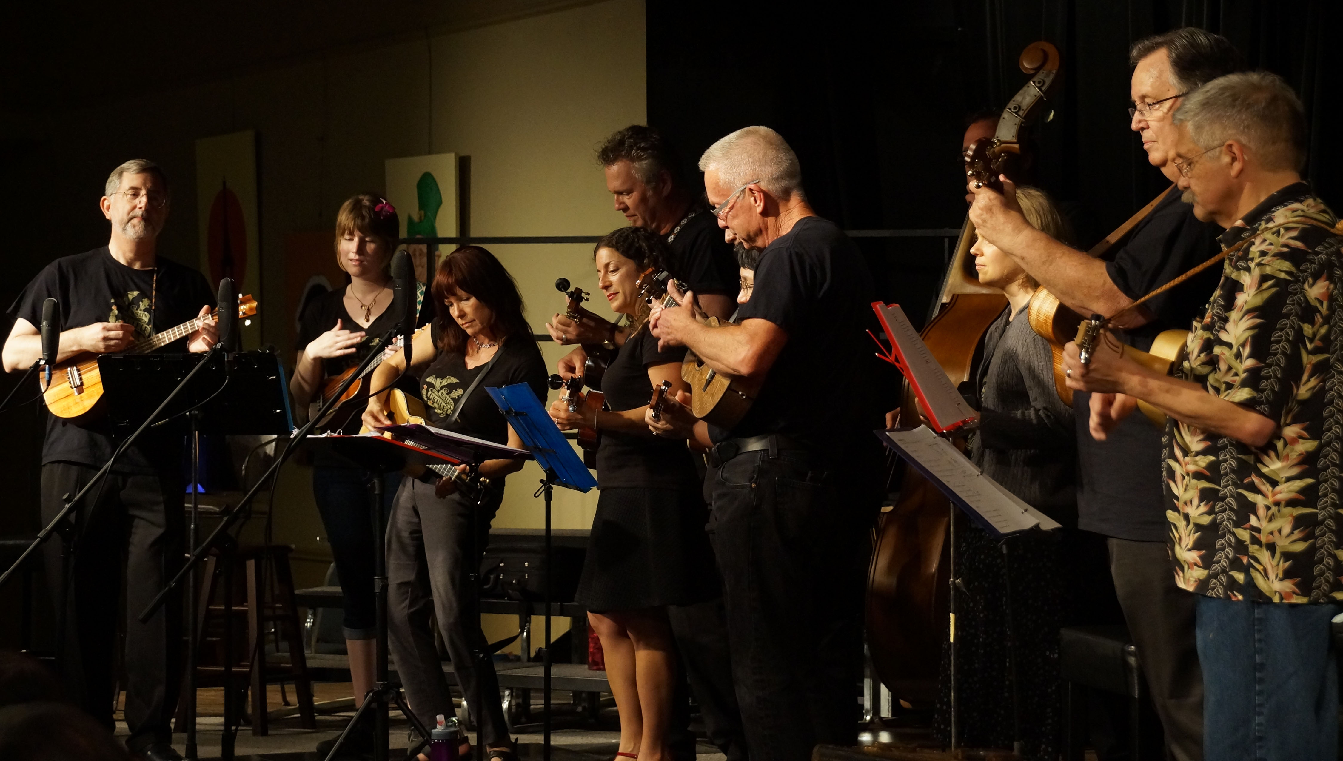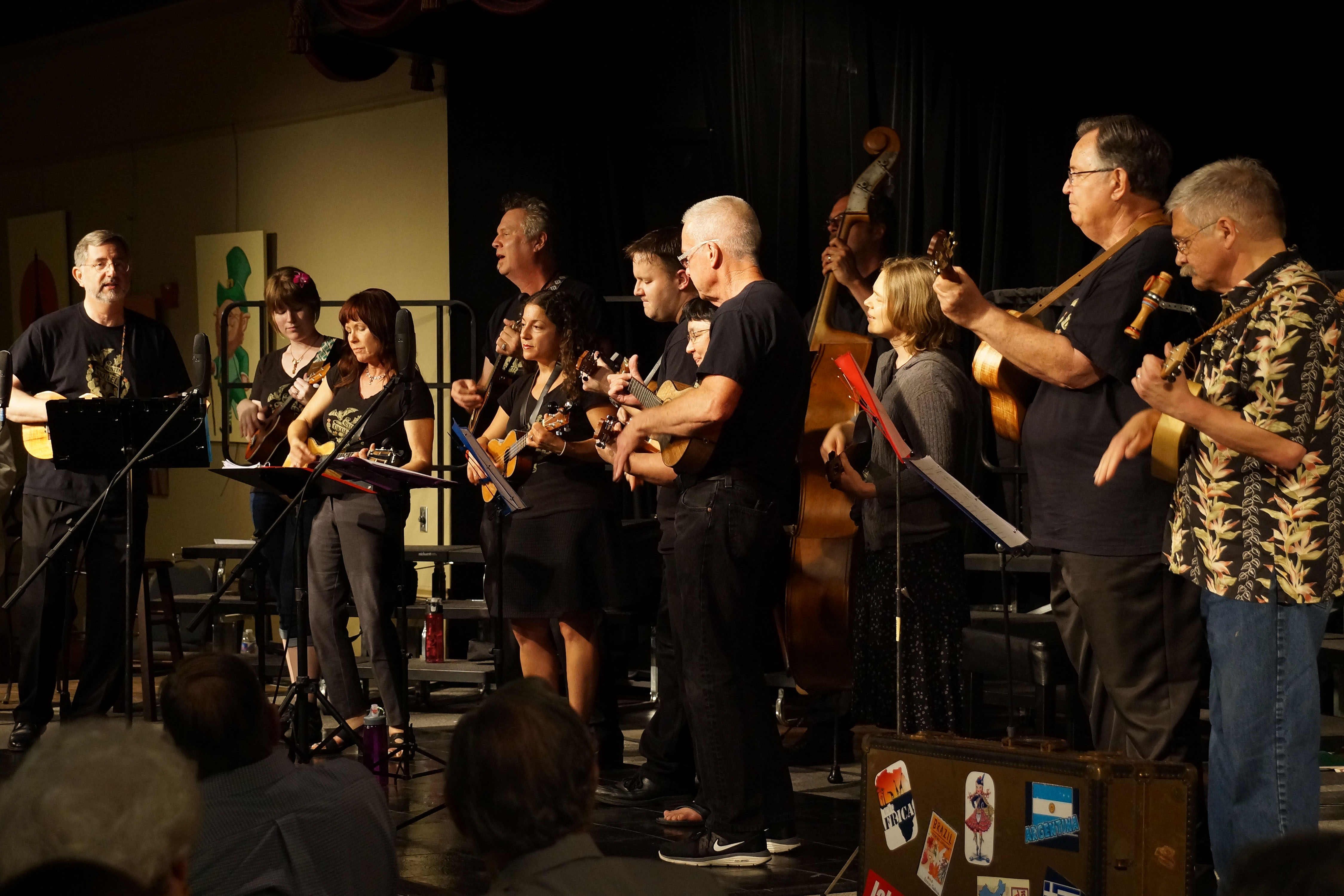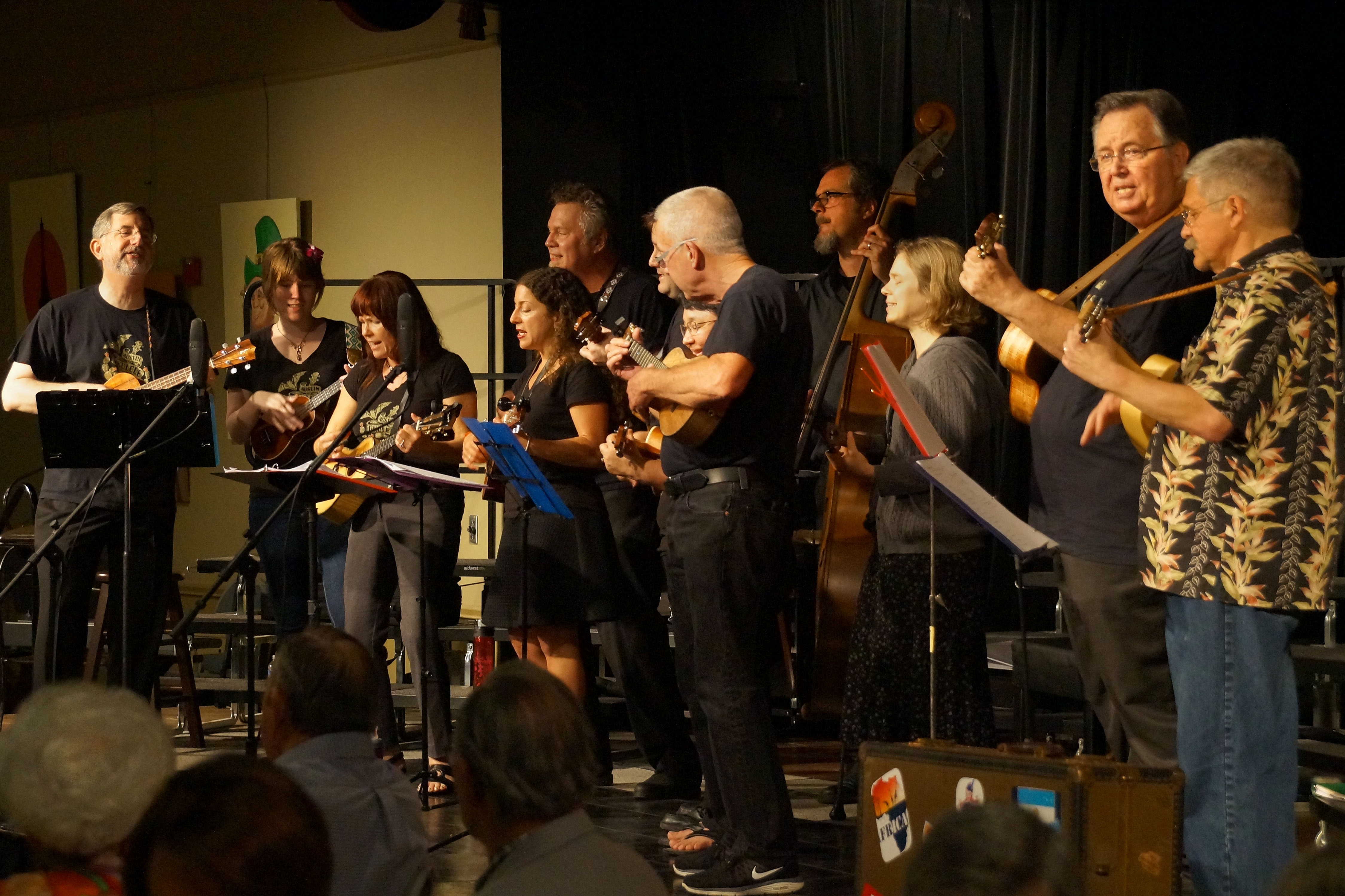 Members of the Austin Ukulele Society had a wonderful time playing some of our favorite songs for a sold out event at the Lakeway Activity Center. With rhythm by Gary on upright bass, kazoo solos by Walter, a surprise guest appearance by a Lakeway Sing Along member on sax, and sweet harmonies throughout, the attendees were delighted by our performance. A special thanks to Nick Renneker and Joann Anderson for inviting us back, to Bob for his musical guidance, to Jen for coordinating the group, and to Lyda for great photography.