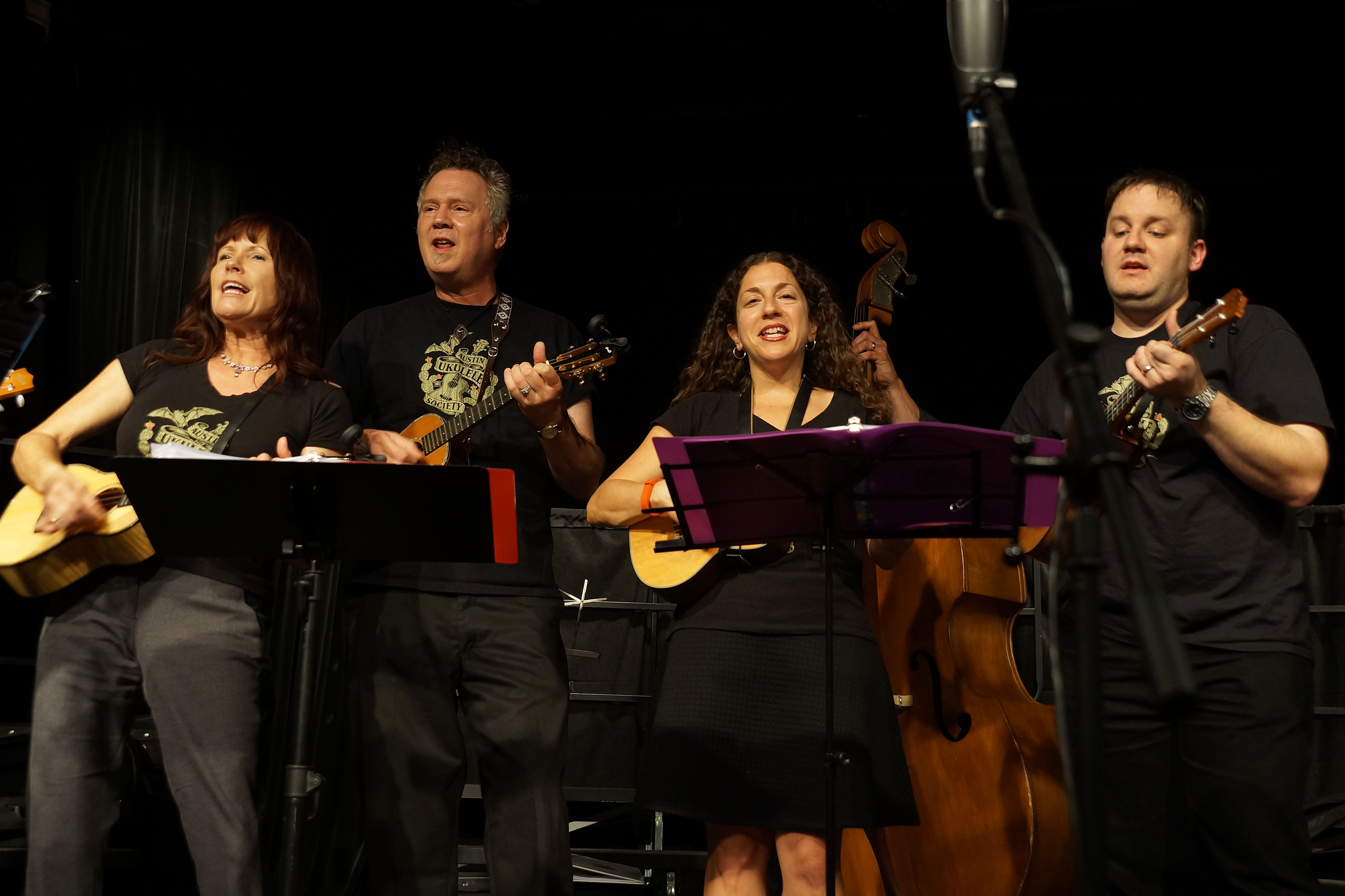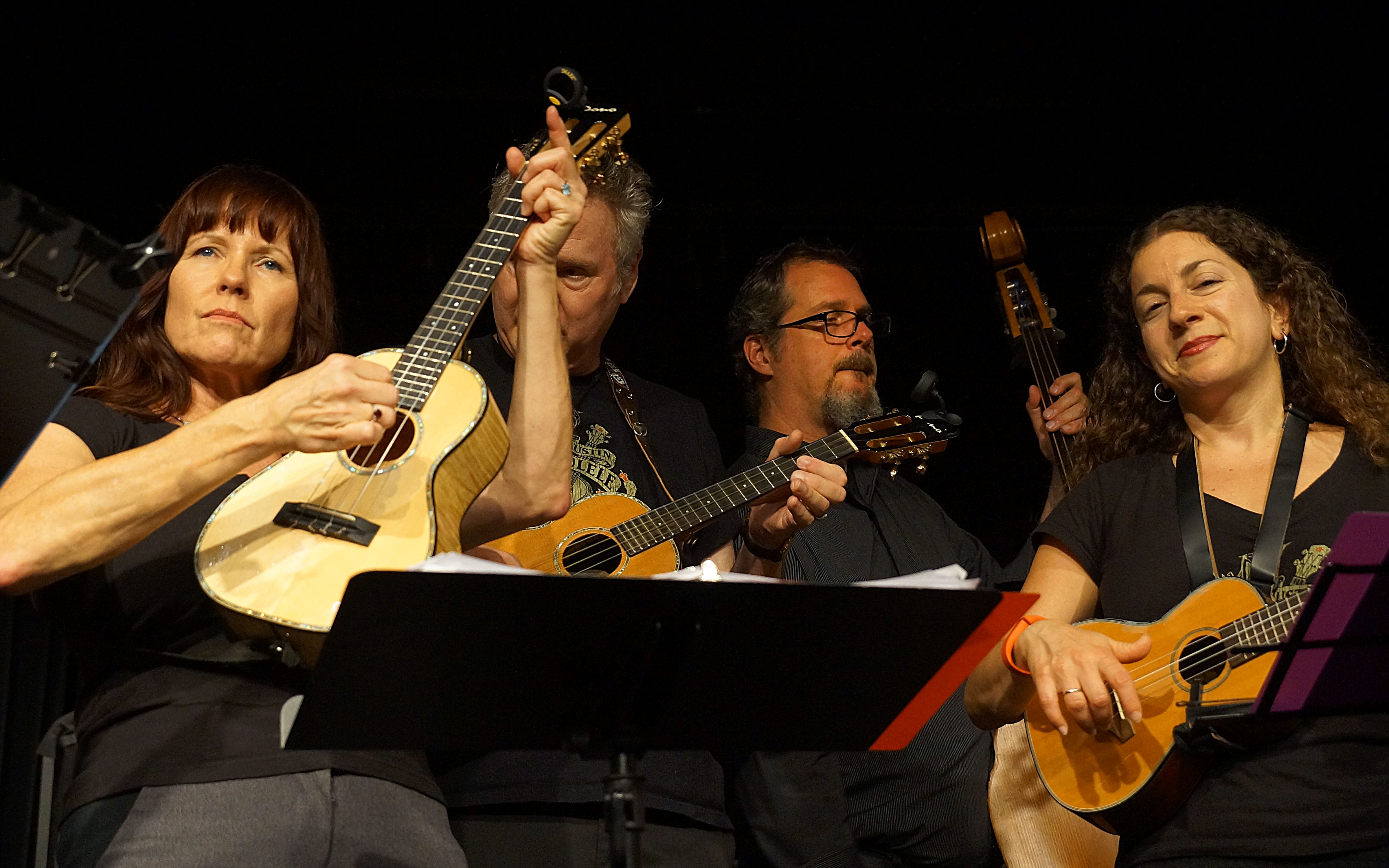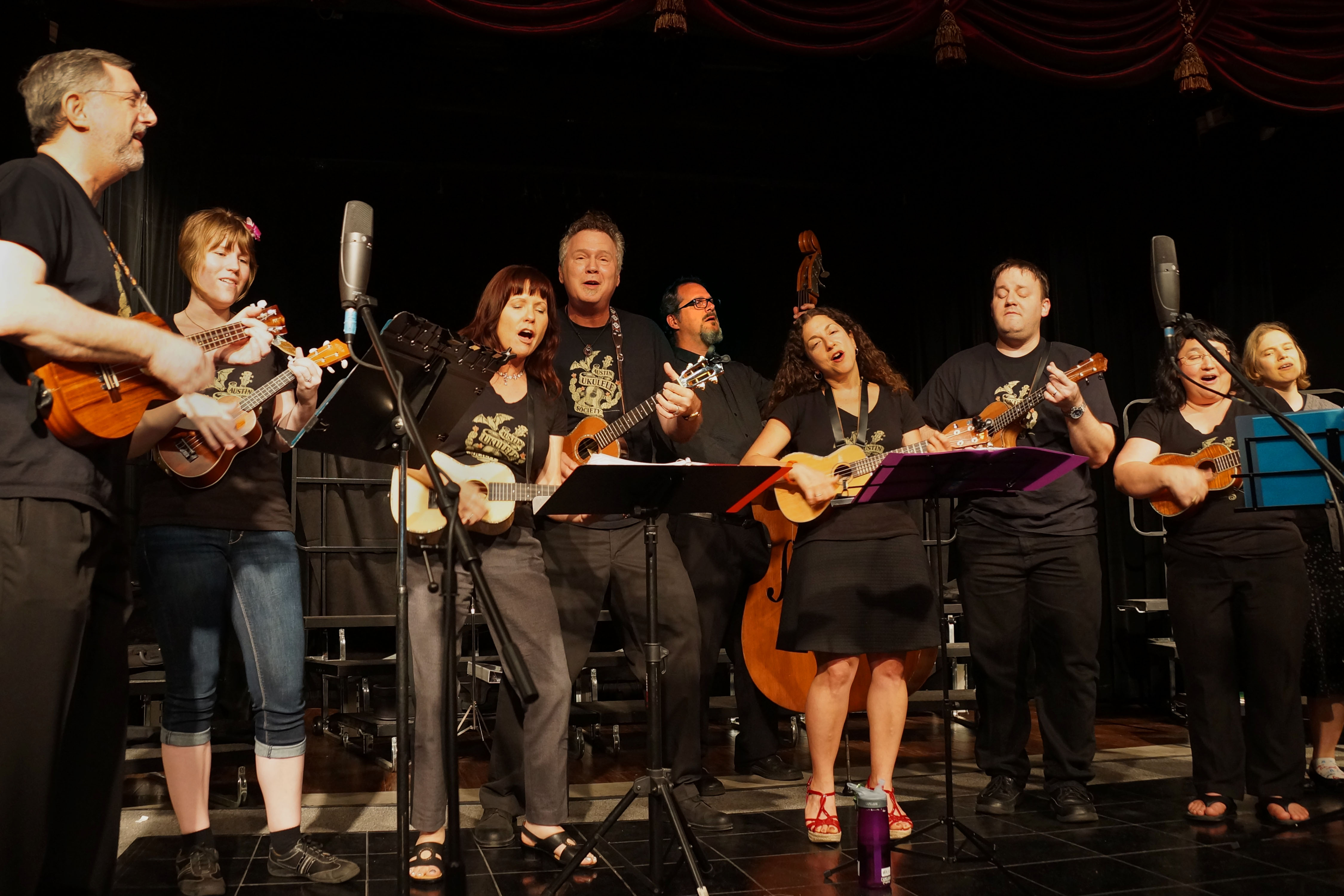 Members of the Austin Ukulele Society had a wonderful time playing some of our favorite songs for a sold out event at the Lakeway Activity Center. With rhythm by Gary on upright bass, kazoo solos by Walter, a surprise guest appearance by a Lakeway Sing Along member on sax, and sweet harmonies throughout, the attendees were delighted by our performance. A special thanks to Nick Renneker and Joann Anderson for inviting us back, to Bob for his musical guidance, to Jen for coordinating the group, and to Lyda for great photography.