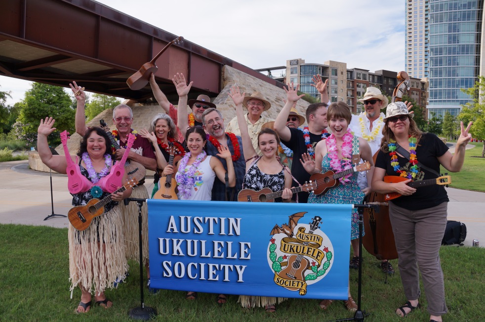 For the third year in a row, an ensemble of Austin Ukulele Society members wowed the runners in the Keep Austin Weird 5K! Many stopped to dance, sing along, or just take a selfie with us. It was a hot time for runners and strummers alike! MANY thanks to everyone who came out. Can’t wait til next year!