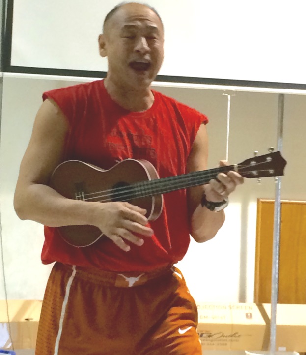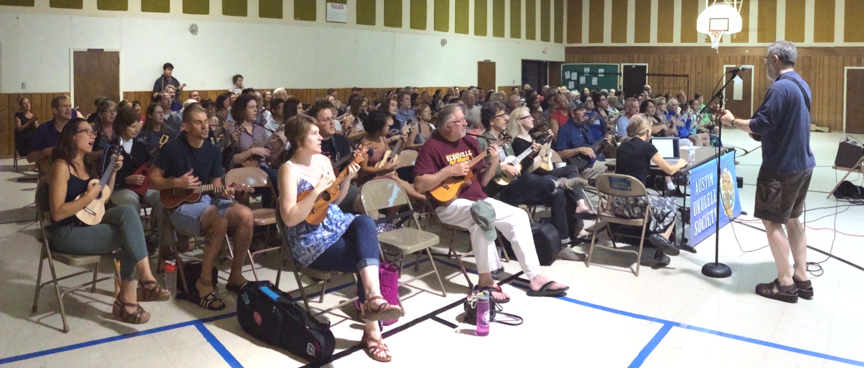 On a warm September evening, a wonderful group of ukulele players gathered again to make music together at the monthly Austin Ukulele Society meeting. We began by sharing local ukulele news and introductions, warmed up with “Three Little Birds,” and moved on to learn our song of the month, Oasis’ megahit from the mid-90’s, “Wonderwall.” Bob led us through some drills to get us comfortable with the chord transitions in the song. We then put it all together, and even fit in some vocal harmonizing on the chorus.