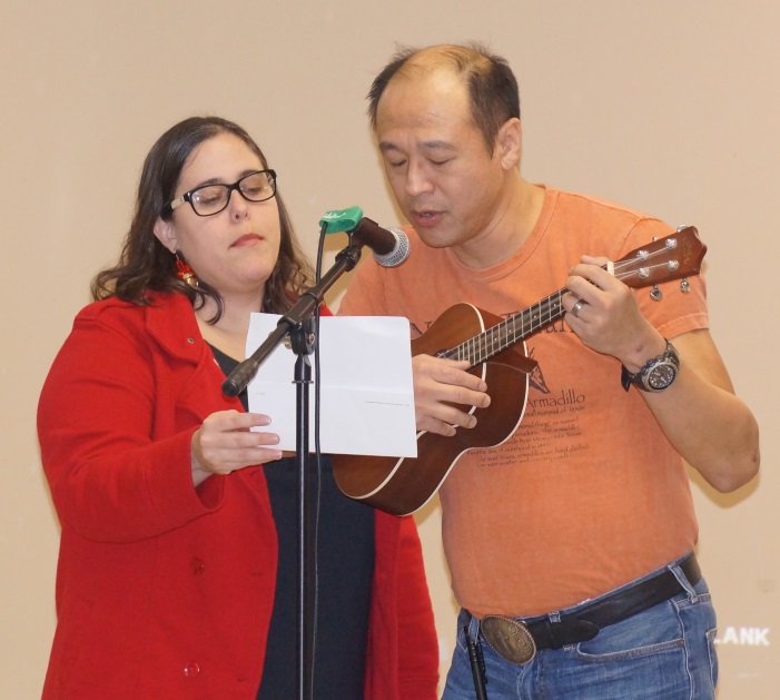 We were treated to terrific open mic performances with a variety of holiday and other tunes by Bob S., Liam and Allison, Walter, Helen, Barry, Bill “Monster” Jones, and Sho and Shin. The whole group closed out the evening with “On the Road Again.”