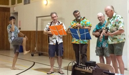 From a seductive performance of “Summer Wine,” to a bluesy rendition of “Suzie Q,” to a cheeky cover of “The Vegetable Song” (Don’t Touch My Plums), our first ever hula dancer accompanying a Hawaiian song performance, and a thoughtful instrumental of “Wichita Lineman,” the members were treated to a delightful variety of talent. Many thanks to the South Austin Ukulele Jam, Darryl, members of the Tuesday Ukulele Group, Vincent, and Kevin!