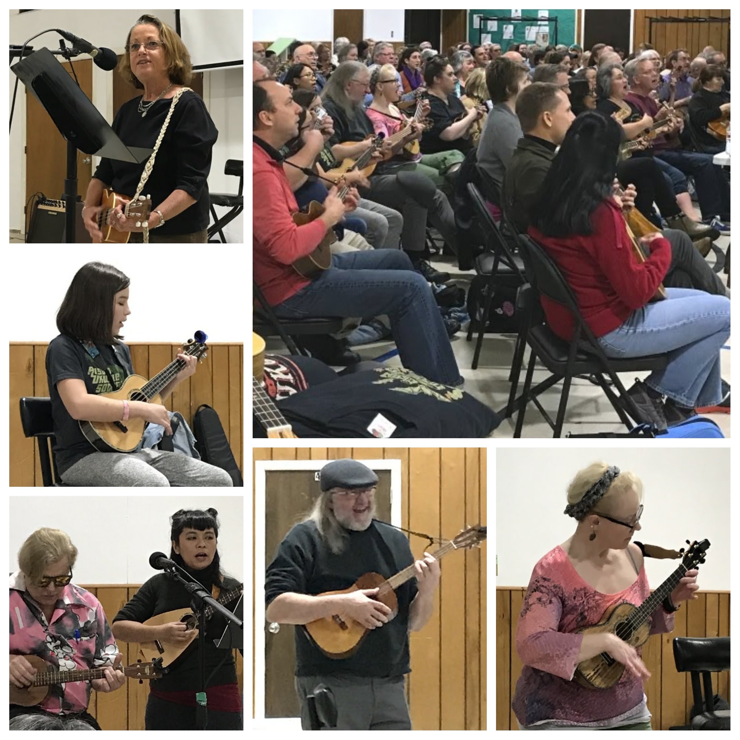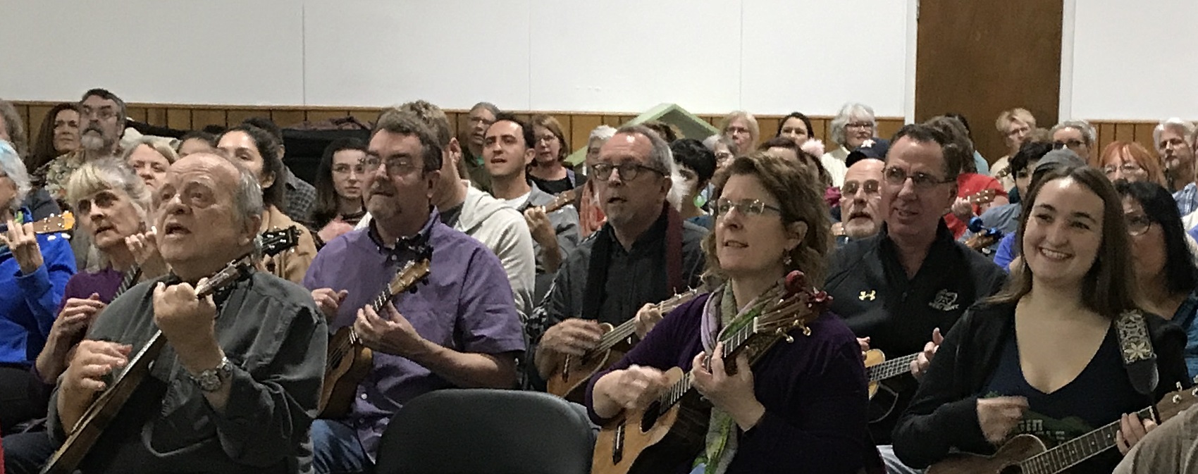 On a windy and chilly January evening, the Austin Ukulele Society kicked off our eighth year (!) with what appeared to be our biggest turnout to date: 165-170 players! The day had started off balmy and beautiful, as one might imagine a southern California winter’s day to be like. But by the time the group gathered that evening, the temperatures in Central Texas had dropped significantly and it felt very appropriate to learn The Mamas & the Papas vocal folk classic, “California Dreamin’.”