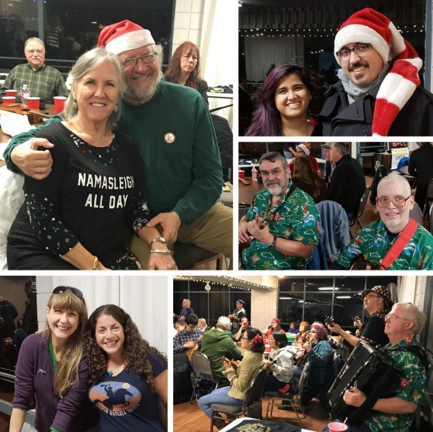 The group was treated to an extended open mic session, with a great variety of holiday and winter tunes in the mix. A big thanks to Bob and Jen, the Ukestra, the Tuesday Ukulele Group (TUG), Ray, Erin and Gabrielle, Rich, Alex, Jay, Kevin, Walter and Jack for sharing their talent and takes on so many fantastic songs.