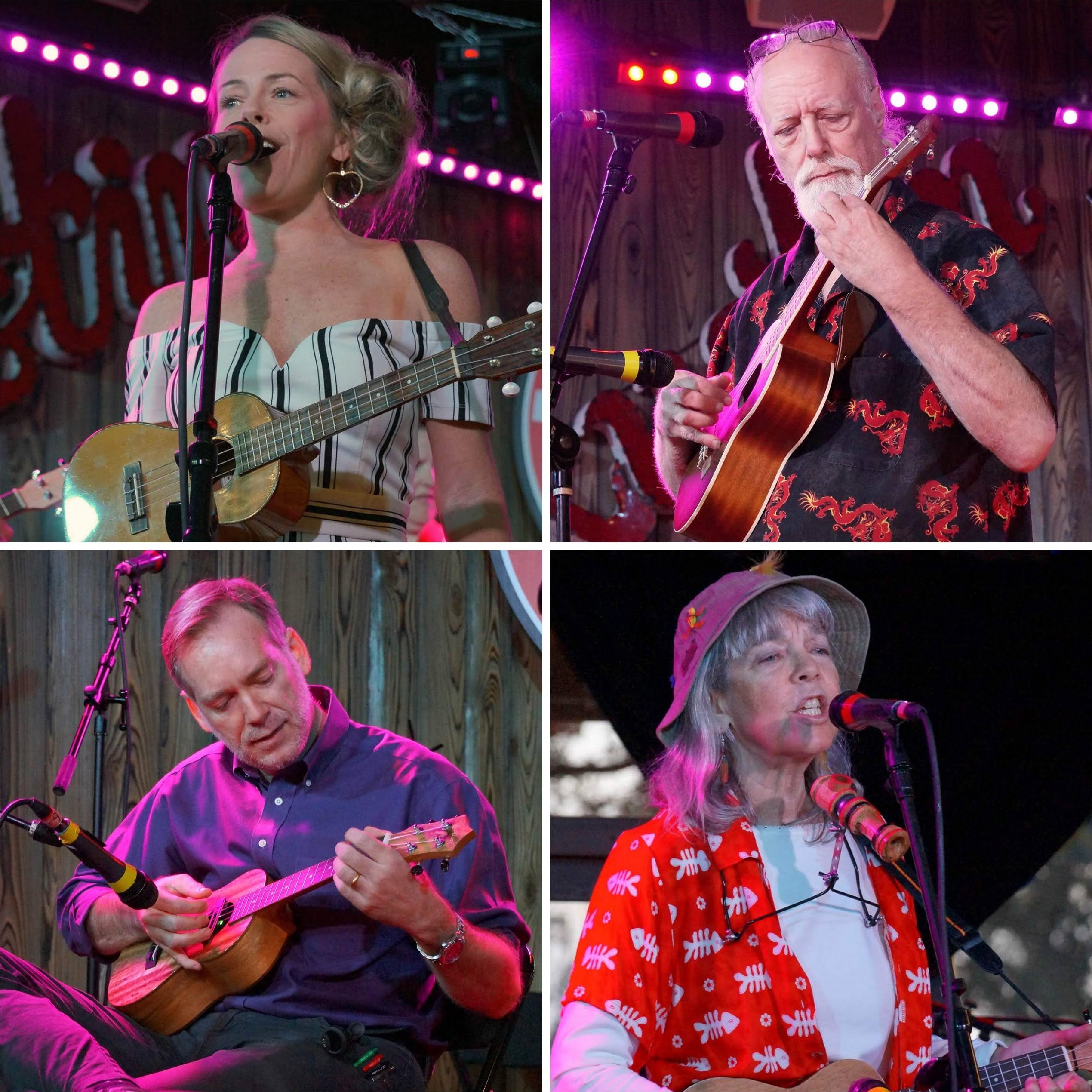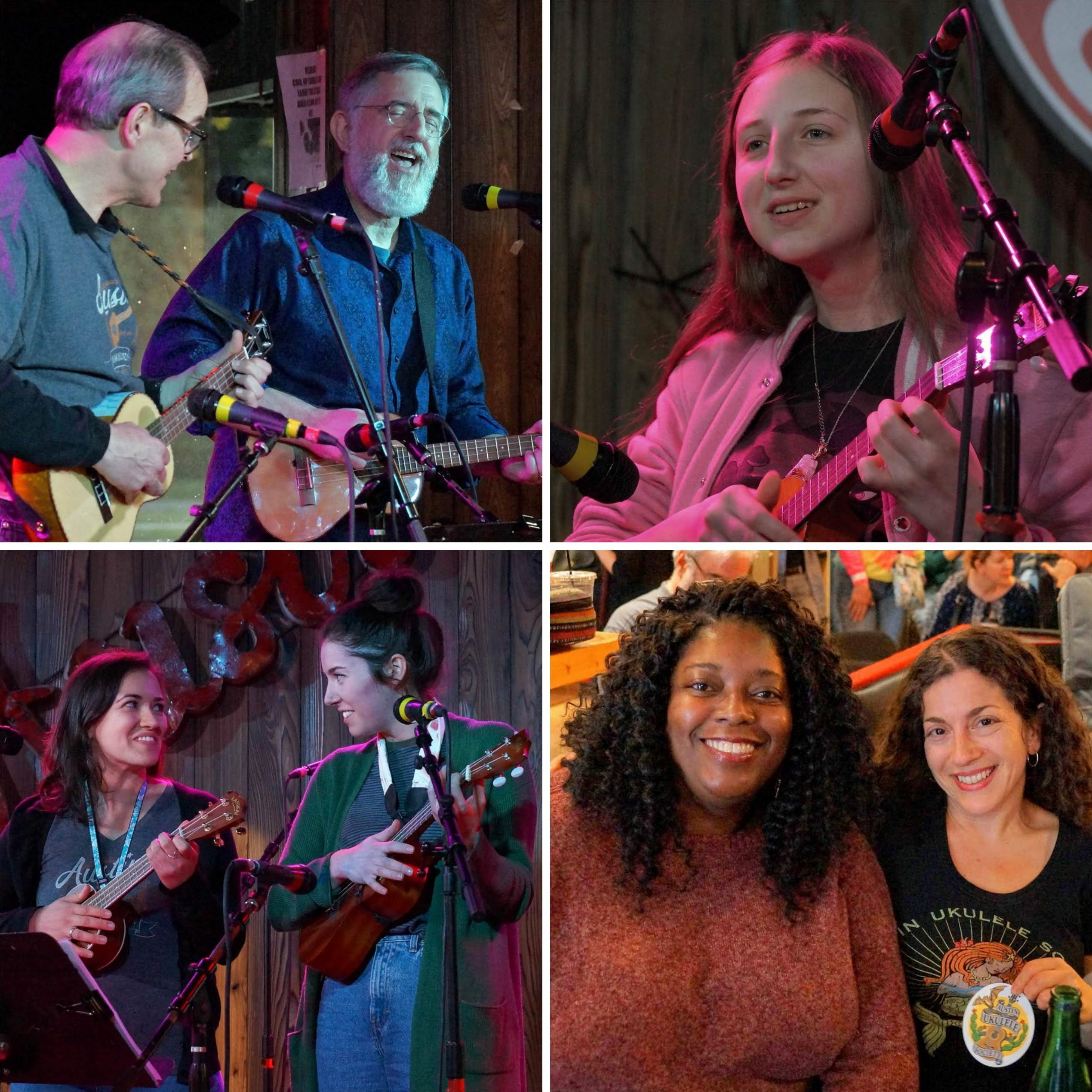 We hosted another fabulous and fun Open Mic Happy Hour Saturday, February 22, at Kick Butt Coffee. We had more performers than at any of our previous open mic events! Ukulele-loving folks packed the place while over 80 musicians performed in groups, duets, and as soloists for the large, supportive, and joyous crowd. An incredible line-up of fantastic talent! A wonderful evening of friends and ukulele music! Thanks to everyone who came out to enjoy the music, all who performed, Lyda Guz for the fantastic photos, Bob Guz who acted as MC, and Jen Richardson for all her work in organizing the event!