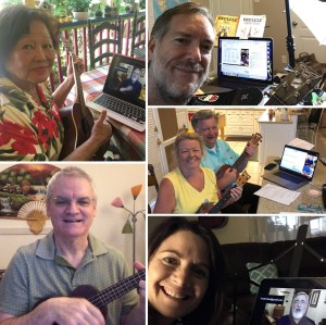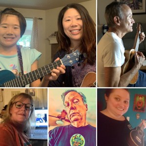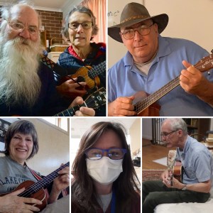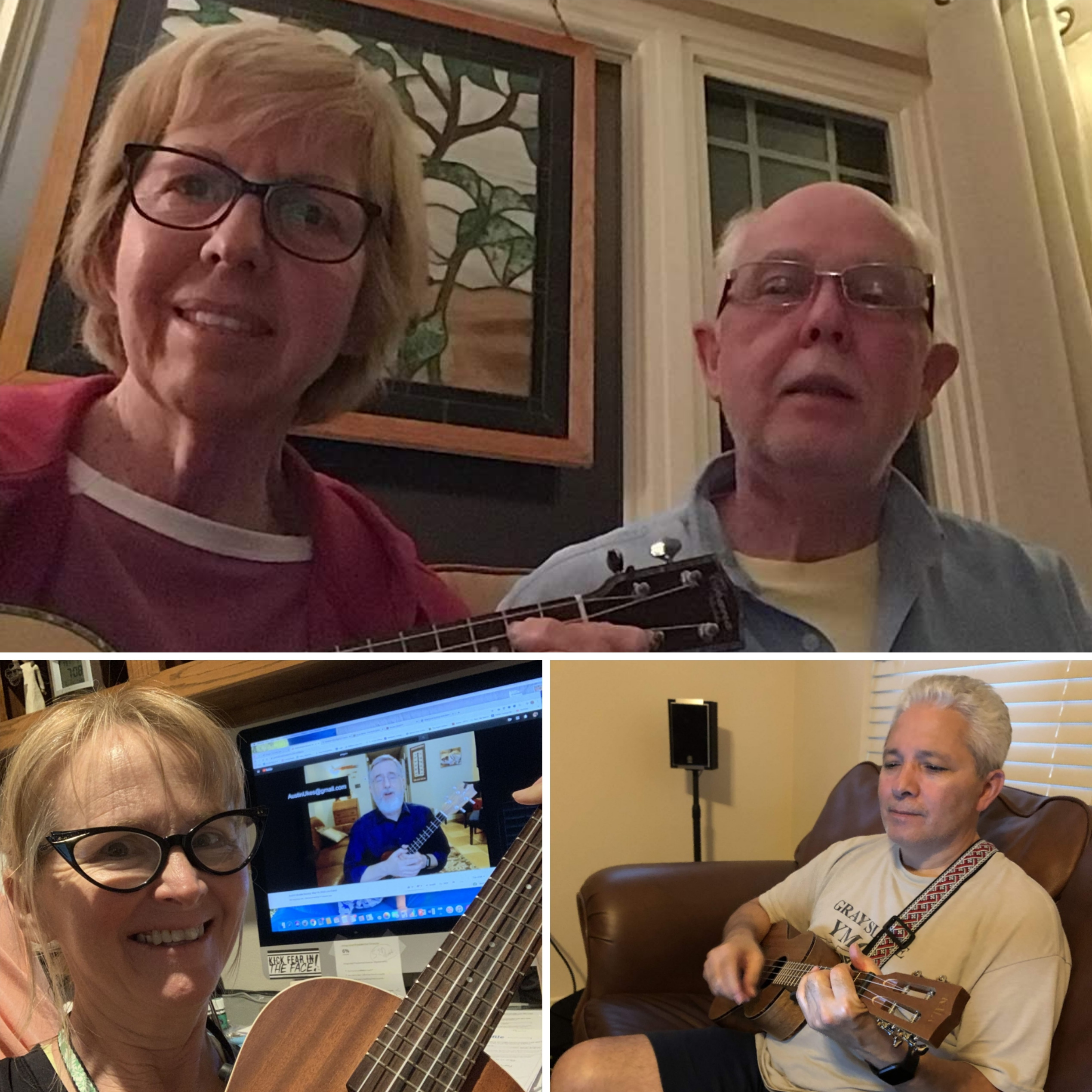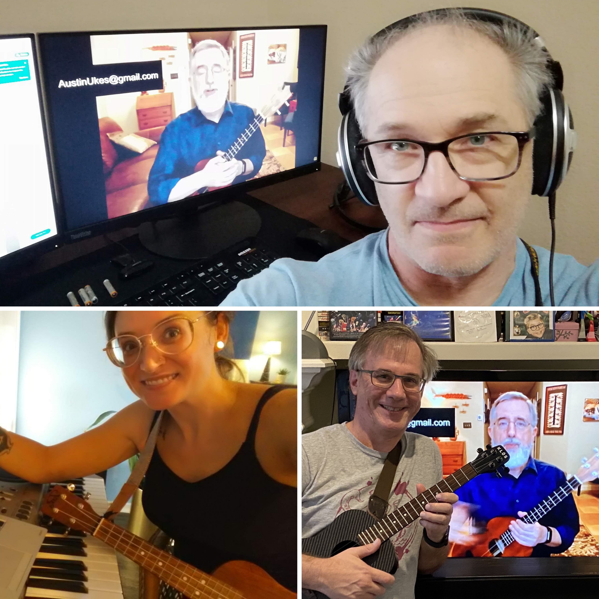 On a pleasant May evening (in Austin, TX), about 300 friends from around the globe met virtually, via YouTube, for the Austin Ukulele Society’s meeting. It was fun to welcome back our Austin-area friends, visitors from around the country and globe that joined us virtually in April, and first timers as well. Uke players from New Zealand, Singapore, Australia, England, Ireland, Brazil, Canada, and all parts of the U.S. joined in!