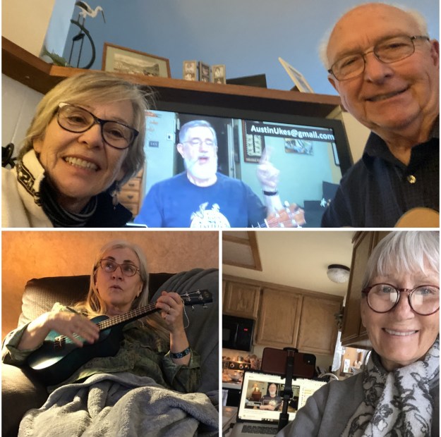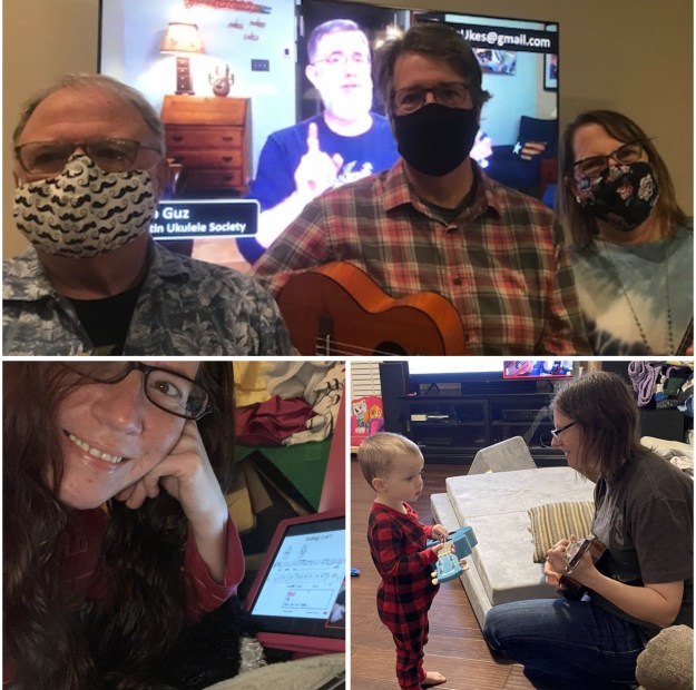 One hundred and fifty Austin Ukulele Society members from around the globe tuned in to enjoy music together at our March 11 meeting.