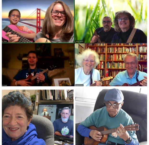 We ukulele players have definitely made the most of a year being socially distanced and in lockdown by finding ways to connect with each other, and we’re so grateful to those of you who have joined us every month of the past year’s virtual meetings and to those of you whose first time was last week. For Bob and Jen, you are truly a beacon of joy and positivity. Thank you for being a pandemic silver lining!!