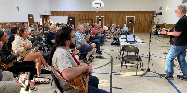 Bob shared some info about his arrangement and gave us a great demo performance of it. He took us through helpful exercises to get comfortable with the tempo, chords, chord changes, strum styles and picking options. We put it all together and got better each time we played it through. We recorded this terrific performance and play-along video, so that you can rock out with the AUS, from wherever you are: