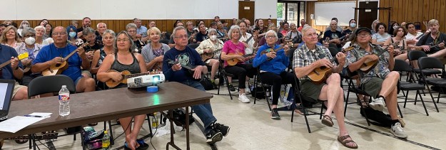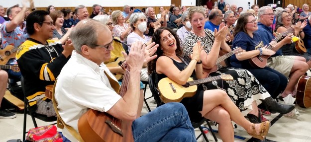 On a warm and lovely May evening, 100+ members of the Austin Ukulele Society gathered together, in person, for a night of community ukulele music. It is truly wonderful seeing the faces of our Austin-area friends, and we were also delighted to welcome uke players from Madison, WI, Cape Cod, MA, McGregor, TX and Dallas, TX.
