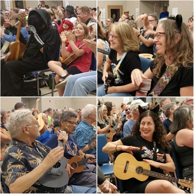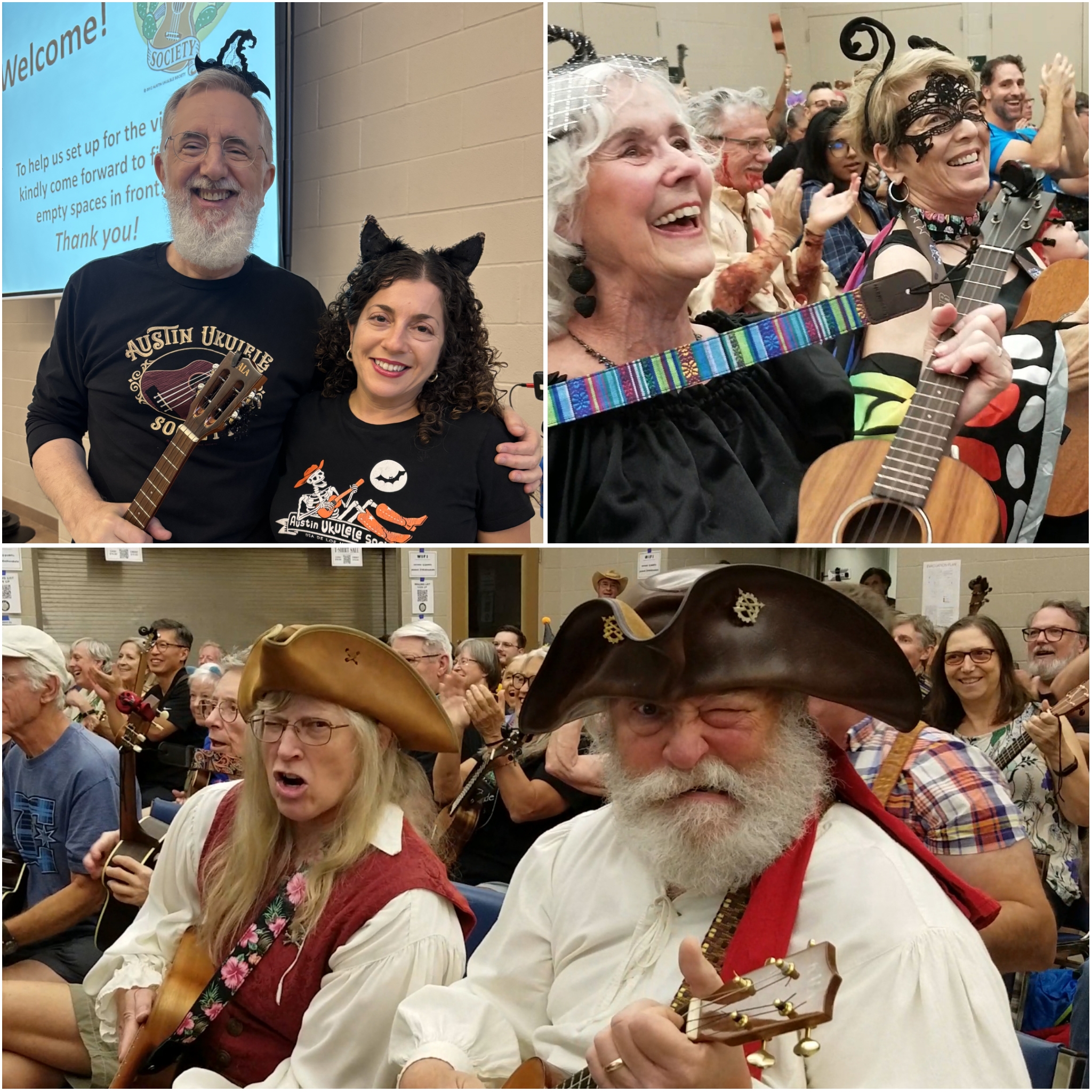A thrilling kickoff to the Halloween season was had by all 165+ in attendance at the Austin Ukulele Society’s October meeting! At this meeting we were thrilled to cover Michael Jackson’s “Thriller.” This epic, eerie and haunting tune is on EVERY Halloween playlist, and the music video is considered the best of all time. We loved strumming and singing it together!