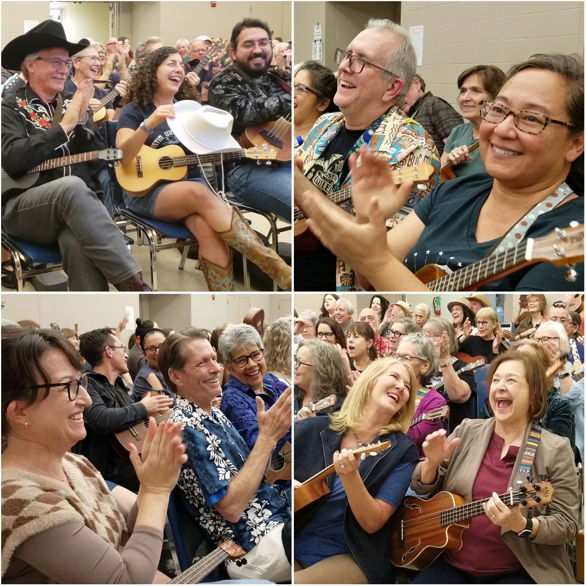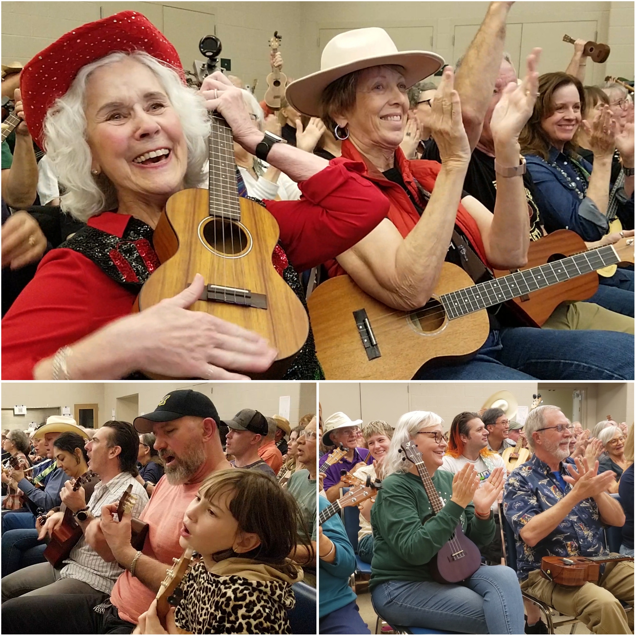 We kicked off our 16th year of monthly meetings on a beautiful January evening in Austin. We had at least 175 ukulele enthusiasts of all levels in attendance! As always, we want to thank you for showing up, smiling and participating. We could not do this without you!