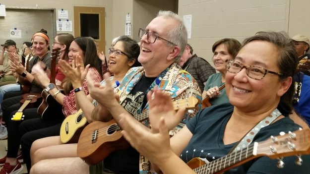 For anyone who might be attending for the first time, the entrance to St. John’s is on the Wynona Ave. side of the church. From there simply follow the sounds of ukuleles tuning up. 🙂