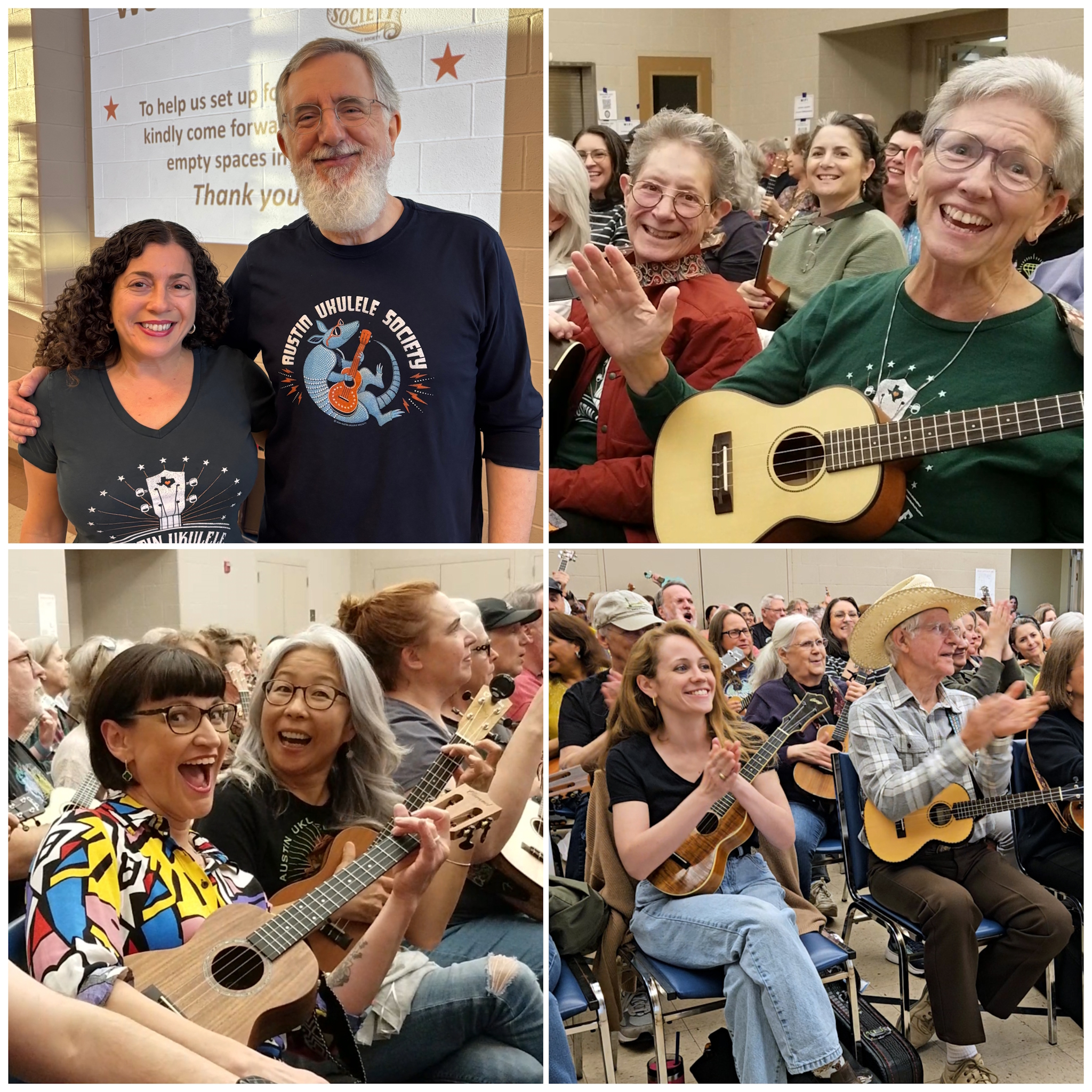 Thank you so much for coming out to the Austin Ukulele Society’s March meeting! We loved seeing so many enthusiastic uke players, from near and far! We owe a big shout out to our friend Vany who joined us all the way from India, and who we got to know in our monthly virtual meetings during the pandemic.