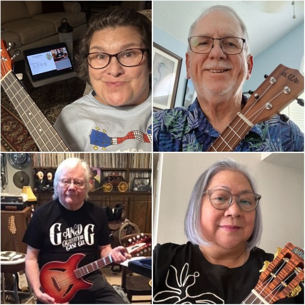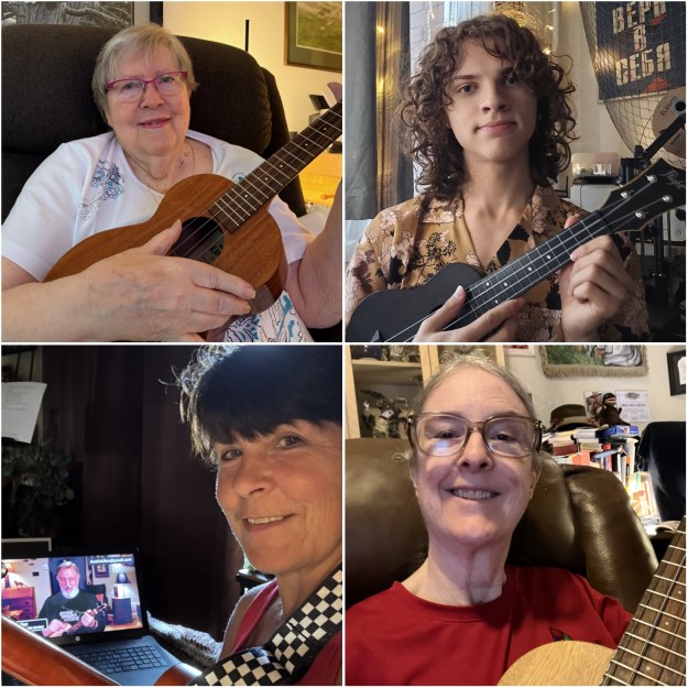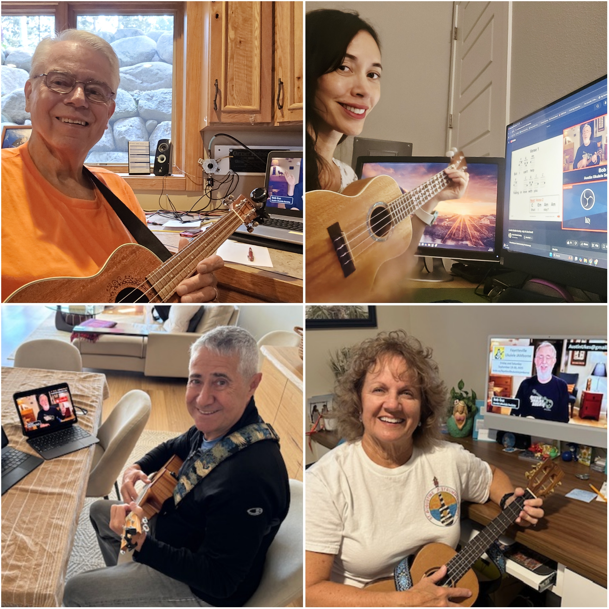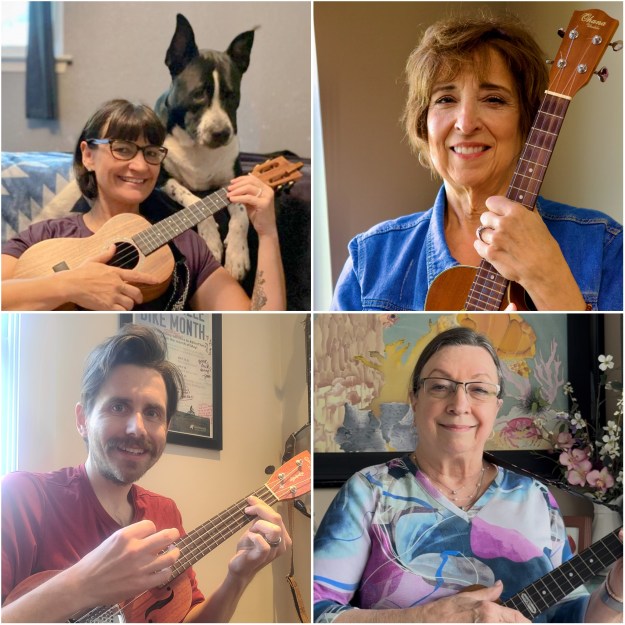 We look forward to being back with our friends from near and far online on Thursday, July 24. And we look forward to seeing our nearby friends at Uke Stars and the next in-person meeting on Thursday, June 12, at St. John’s United Methodist Church. Be well and keep strumming!  🙂