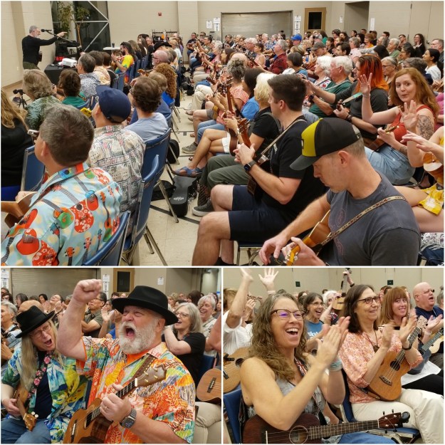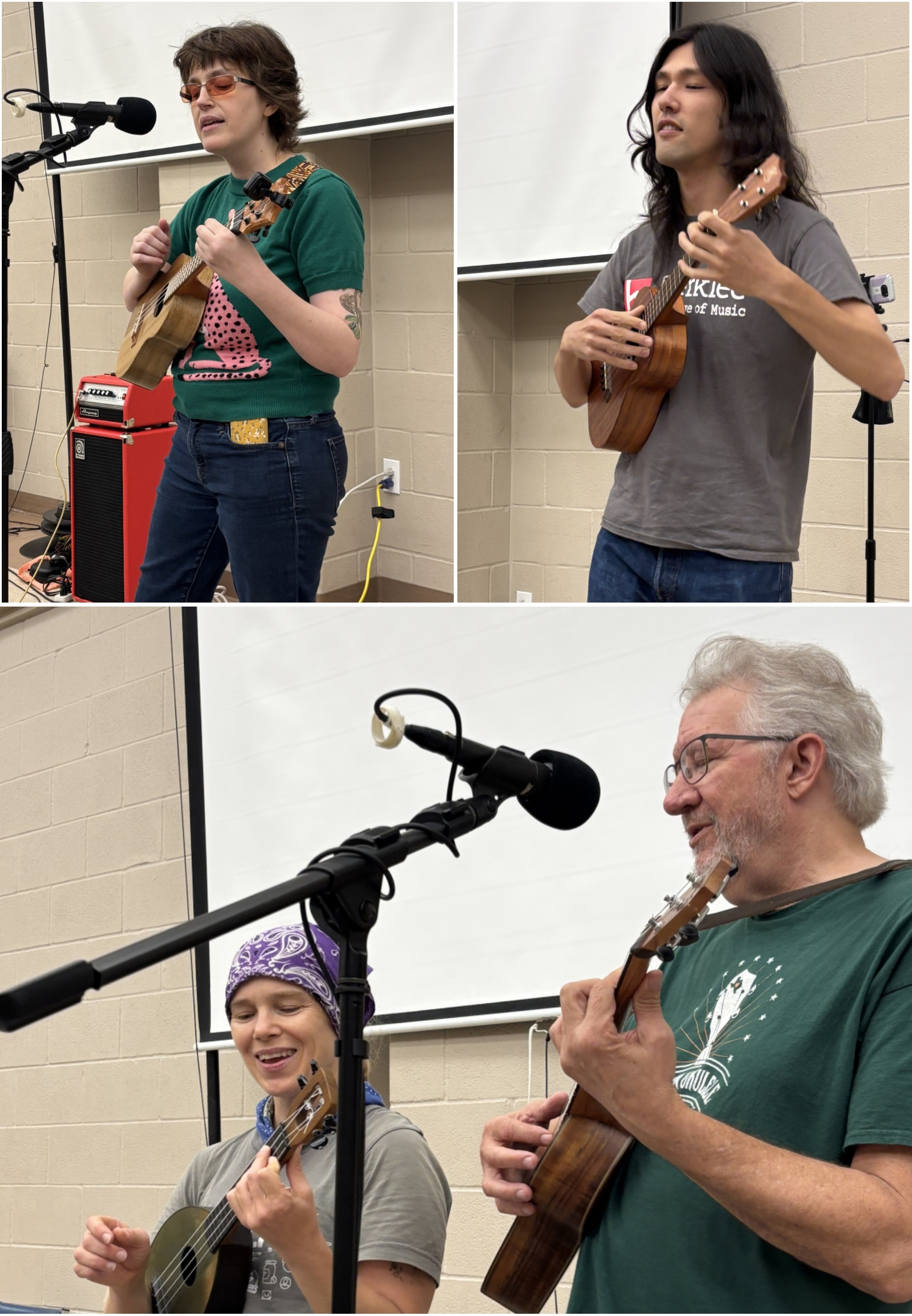 We started the evening with local ukulele news, including a ‘save the date’ for Lil Rev and Rocking Ray’s September 25th workshop and concert. Then we enjoyed warming up our voices and fingers with Bob Marley’s “Three Little Birds.”