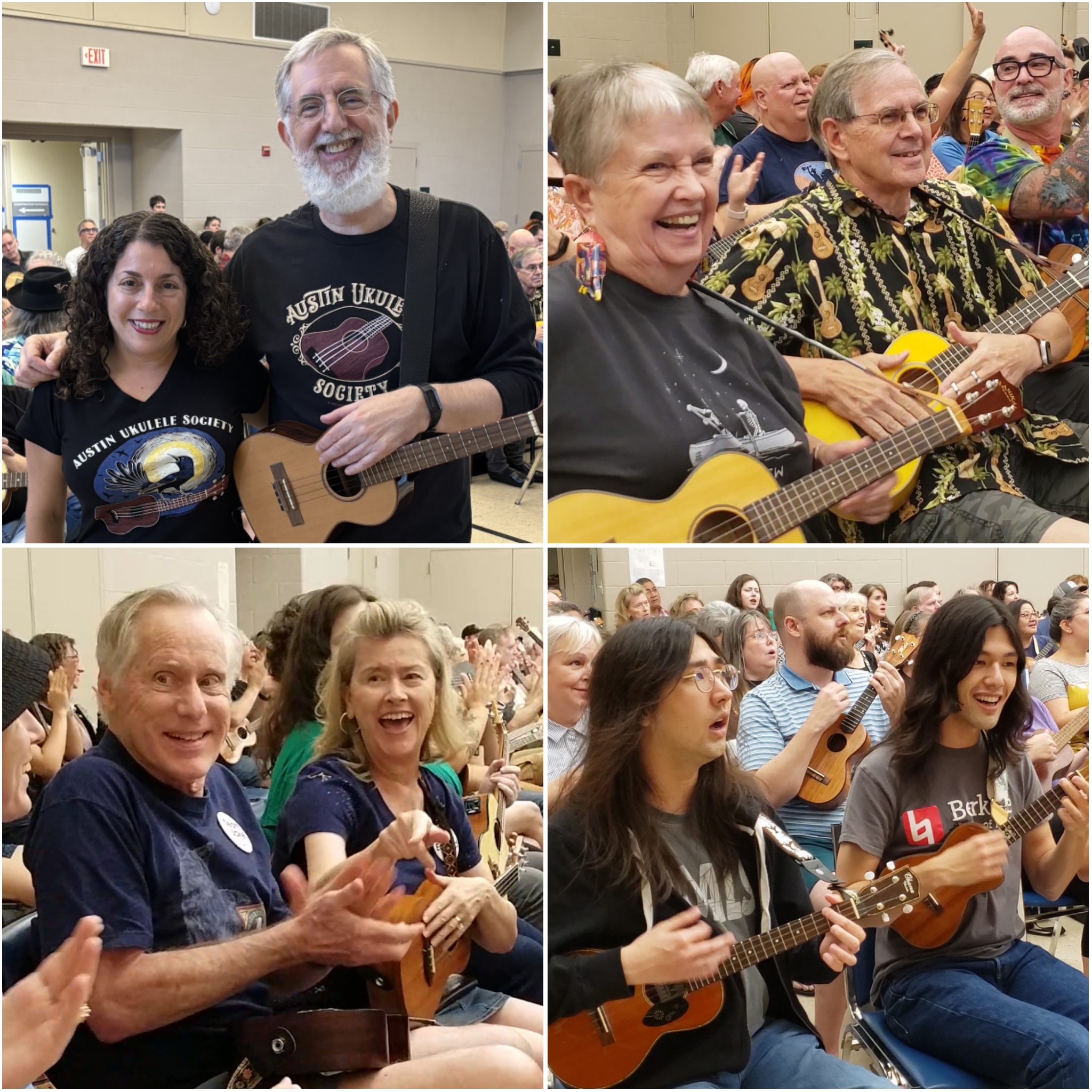 Dancing in the StreetOn a beautiful summer evening in Austin, nearly 150 ukulele players of all ages and stages enjoyed gathering for the June monthly meeting. We had a great time connecting over our beloved 4-string instrument!