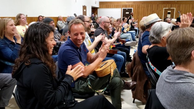 We enjoyed introductions and catching up with one another, before warming up with Bob Marley’s “Three Little Birds.” Then Bob shared some info about Bruno Mars’ “Count On Me,” and gave us a terrific demonstrative performance of it. He launched into the tutorial soon after, and we enjoyed learning some great tips and tricks for playing the chords, chord progressions, tab as well as vocal harmonizing options on this fun tune. After Bob’s tutorial, we put it all together and played “Count On Me” together, twice. After our closing song, Willie Nelson’s “On The Road Again,” Bob shared some of our collaborative videos from virtual and in-person meetings alike.