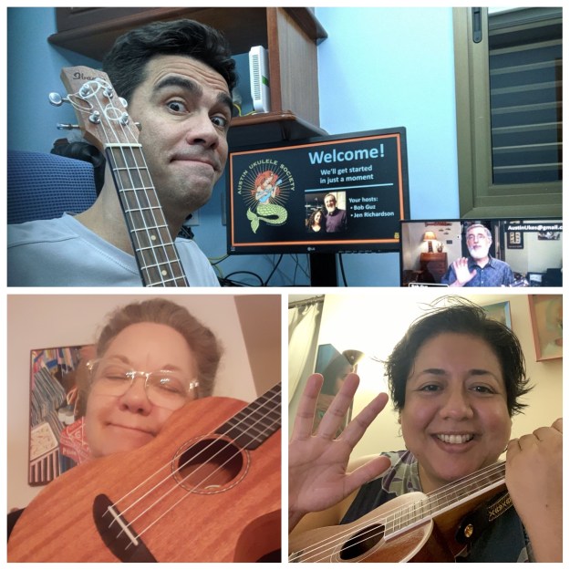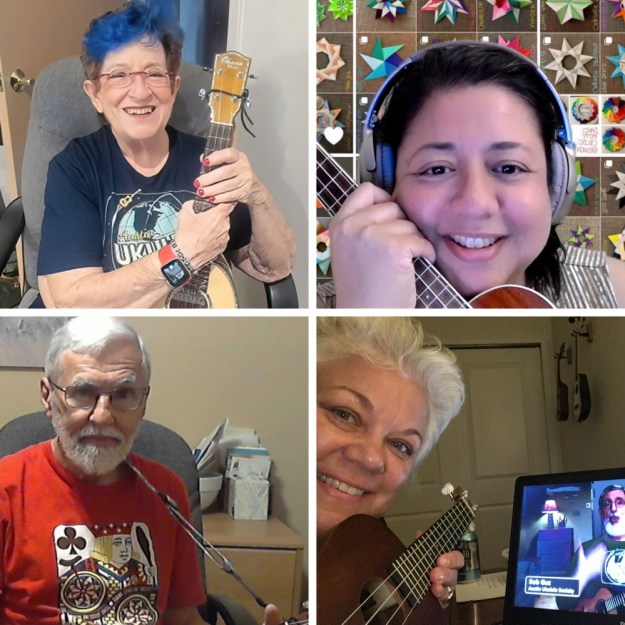 On a warm and lovely May evening, 100+ members of the Austin Ukulele Society gathered together, in person, for a night of community ukulele music. It is truly wonderful seeing the faces of our Austin-area friends, and we were also delighted to welcome uke players from Madison, WI, Cape Cod, MA, McGregor, TX and Dallas, TX.