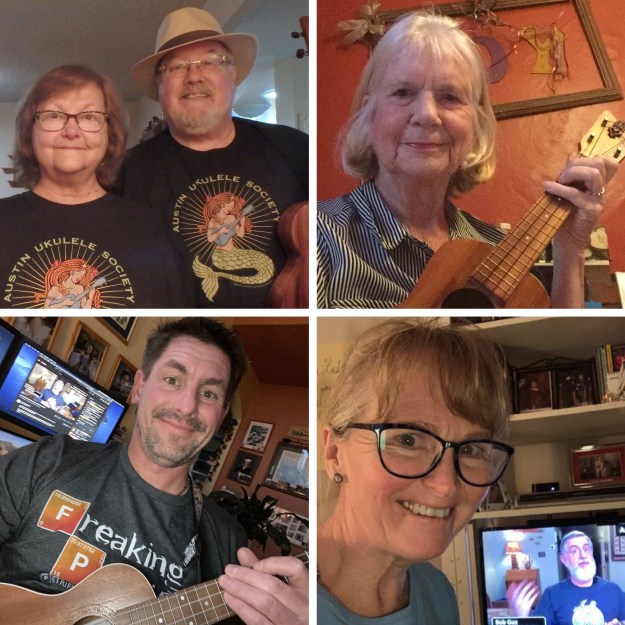 Bob also announced that our September 9 meeting will be virtual and NOT in person, due the surge in COVID-19 cases in the Austin area. We appreciate y’all for sticking with us, and we’ll be delighted to have you join us on virtually on Thursday, September 9, on the Austin Ukulele Society’s YouTube channel . Hope to see you there!