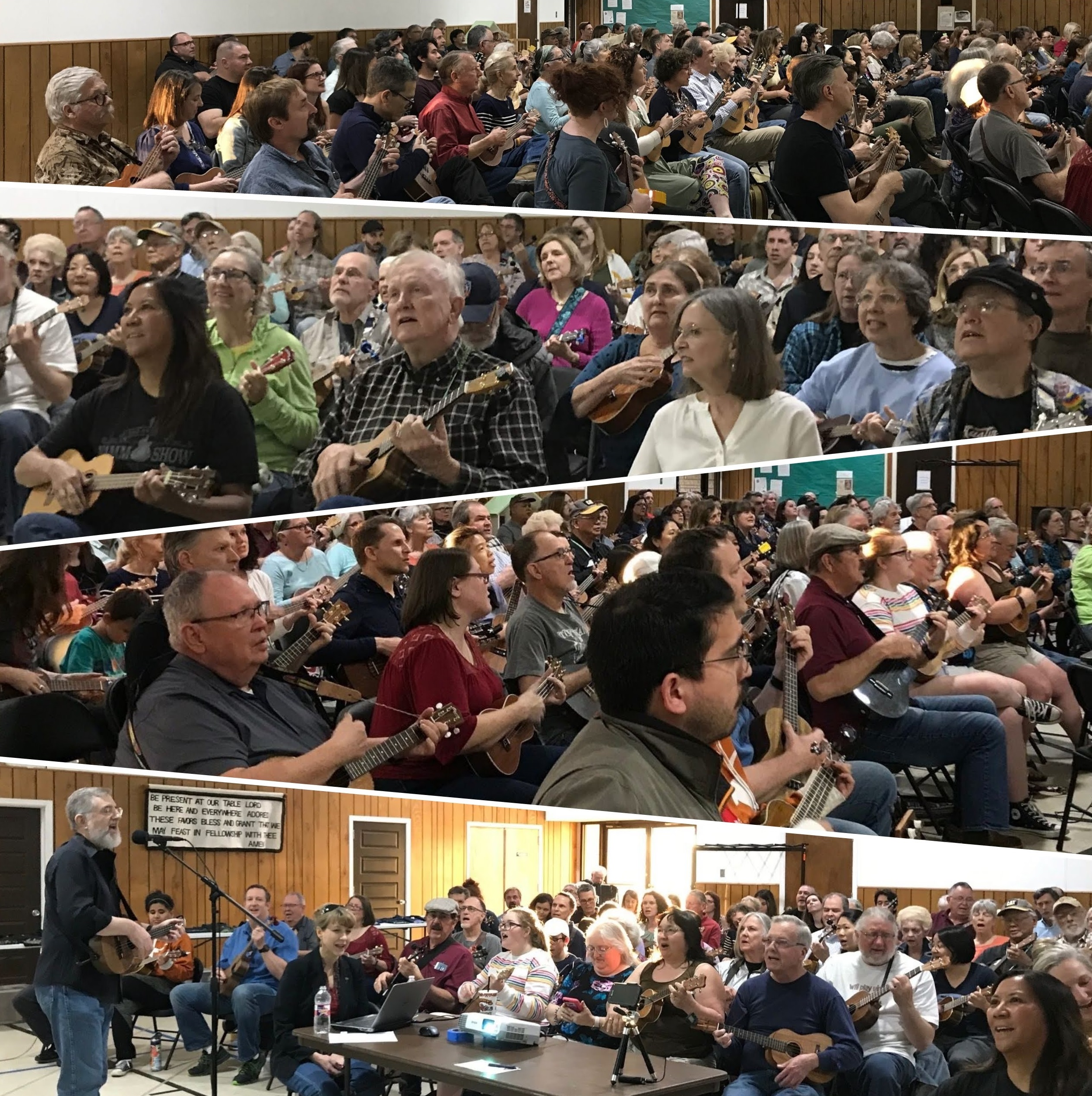 With September 2019 being the 50th anniversary of the release of the Beatles’ iconic album Abbey Road, over 140 ukulele players from Austin (plus visitors from Dallas, Houston, Florida, and more!) learned to play an incredibly fun and catchy track from it, penned by Ringo Starr: “Octopus’s Garden.” Bob demonstrated his great arrangement for us and took us through some very helpful exercises, to get us comfortable with the strumming styles, the harmonizing options, and the picking part of the outro. After practicing each component, the group put it all together and got better and better with each run through. We hope you enjoy our tribute to Ringo Starr and the Beatles. We are so grateful to everyone who joined us for the September meeting and a special thanks to Aaron Lewis for his great U-bass playing!